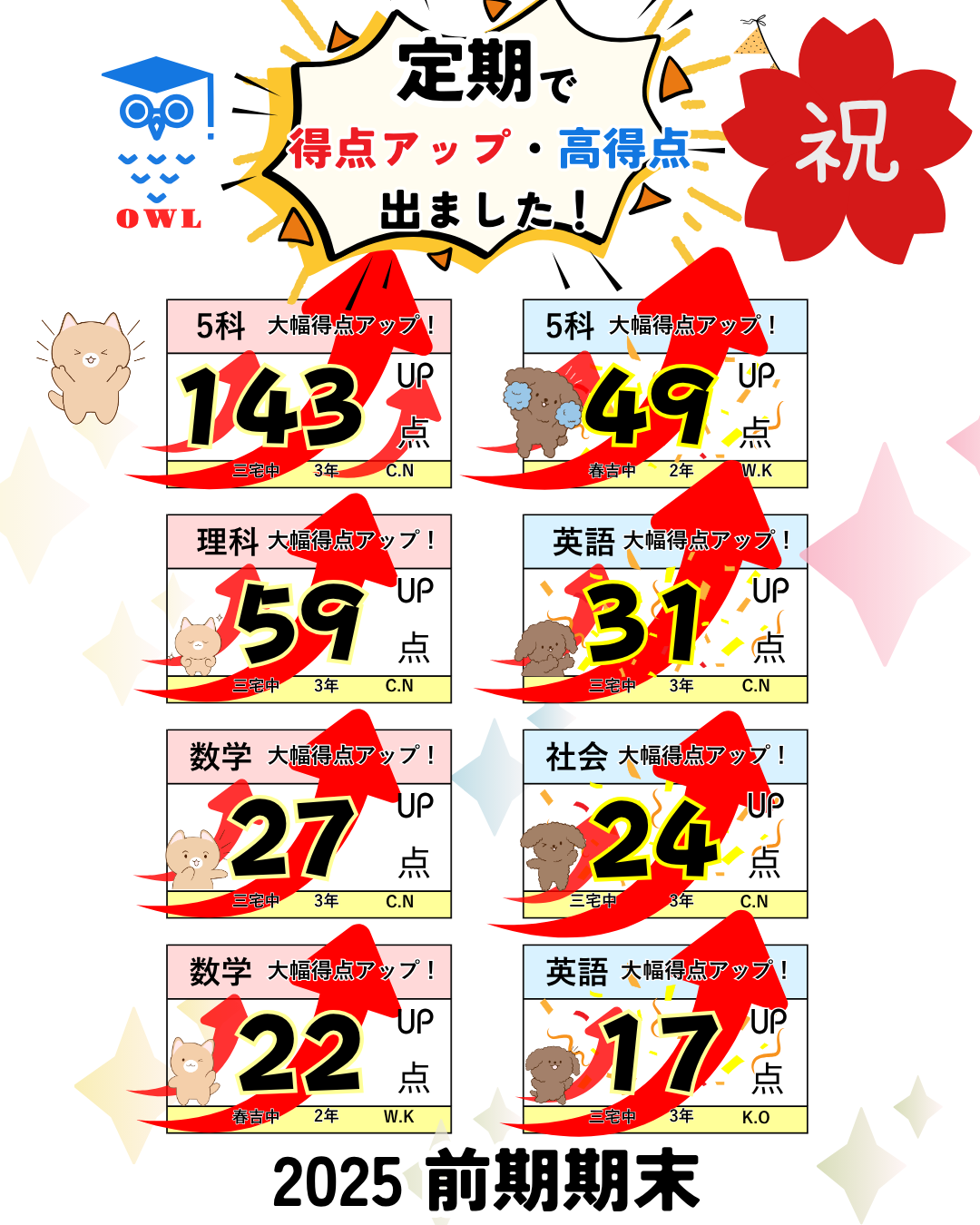 もちろんそれ以外にも成績UPが続々上がってきてます!