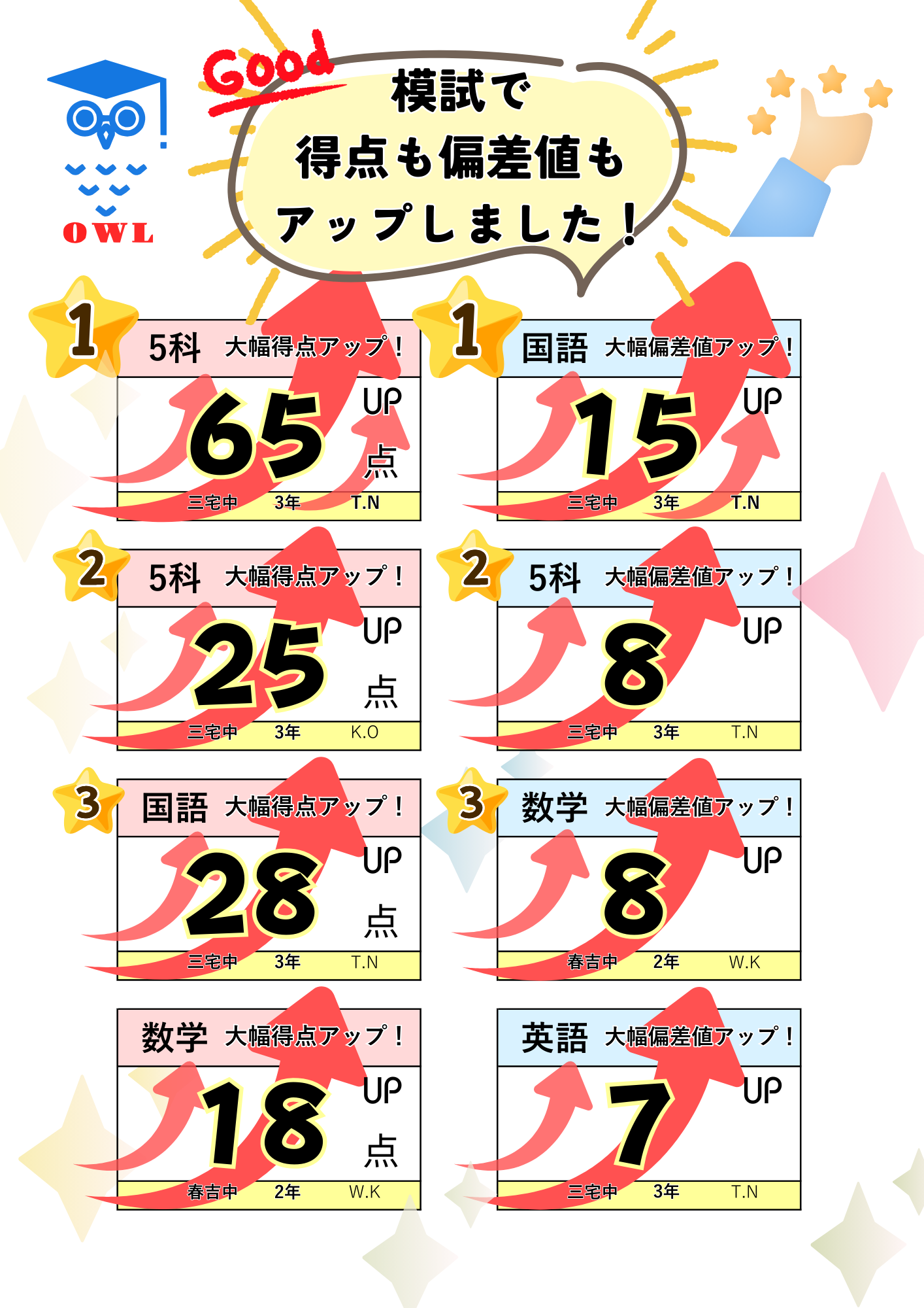 自立学習塾OWLは定期テストに強いだけでなく、模試でも結果を出します